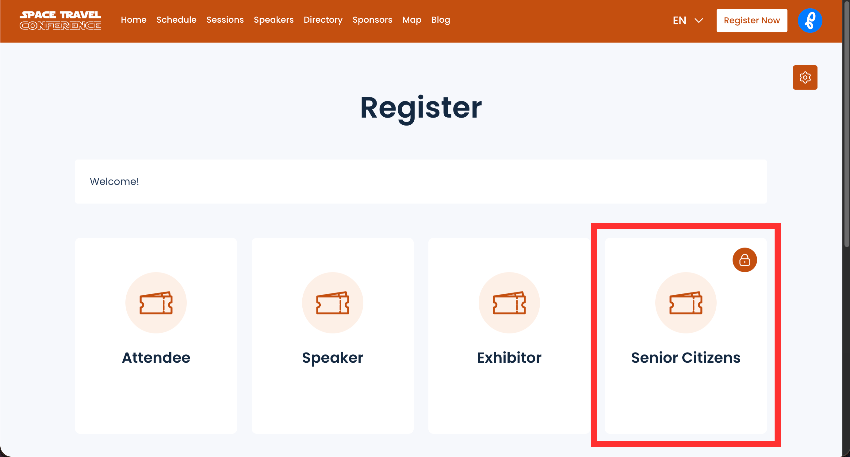 Categories can also be rendered visible but locked behind a passcode. This method will make the category visible on the Event Website.