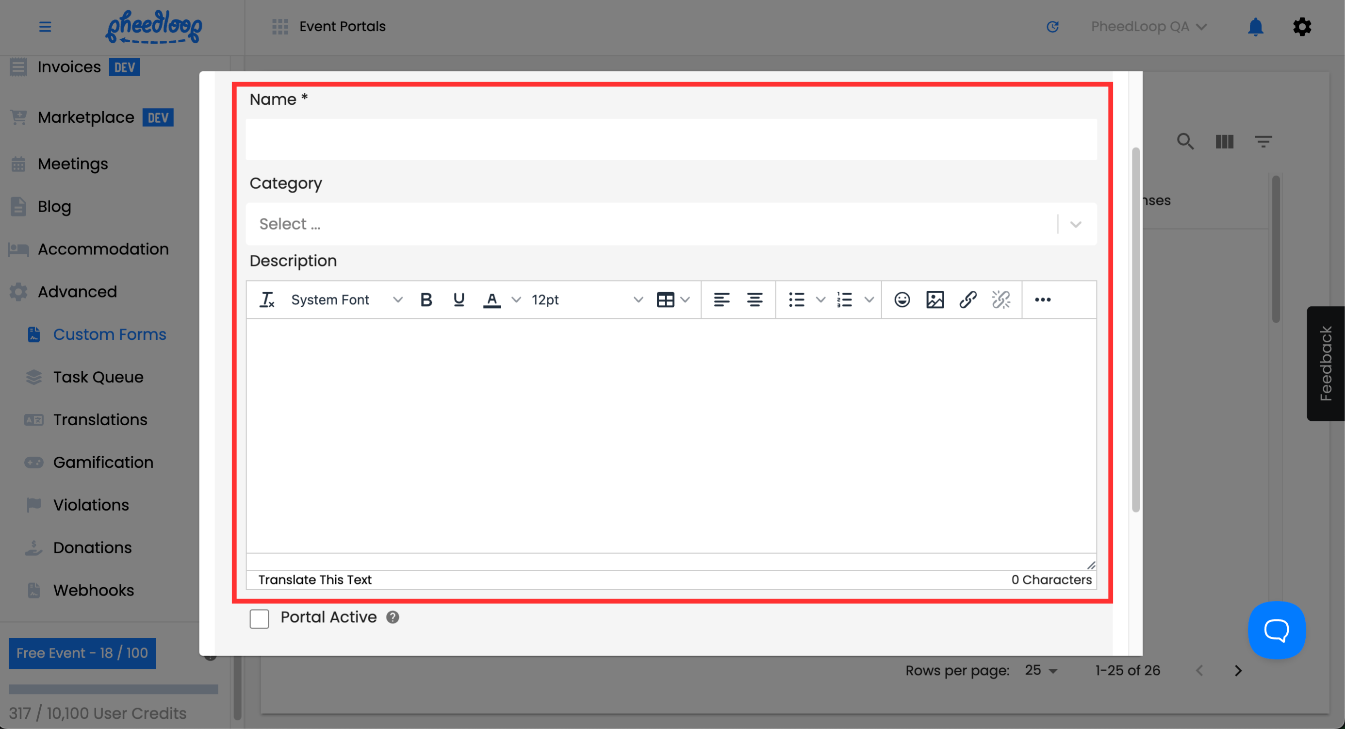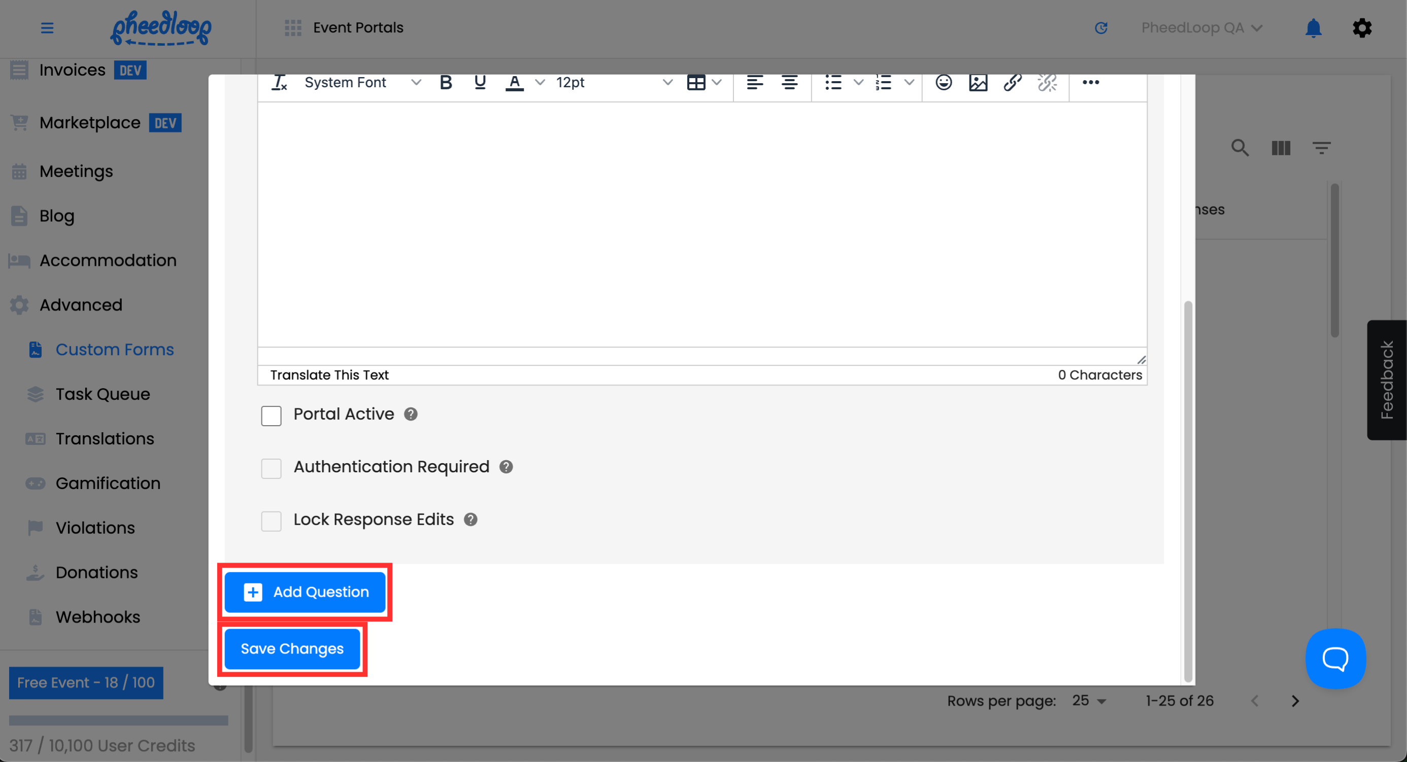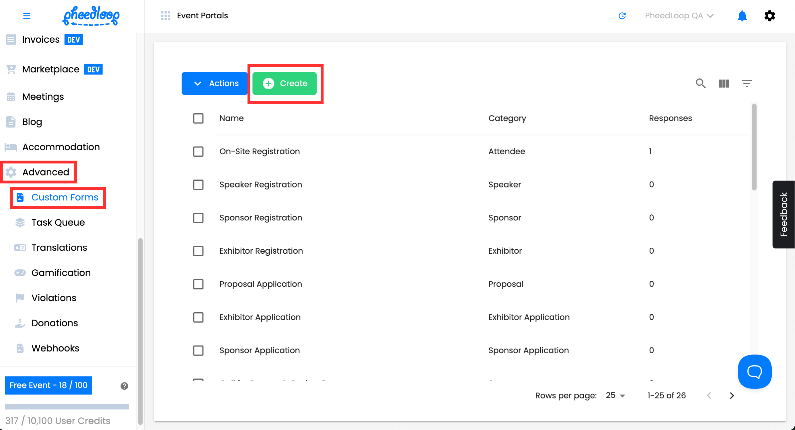 - From the Event Dashboard, navigate to Advanced > Custom Forms