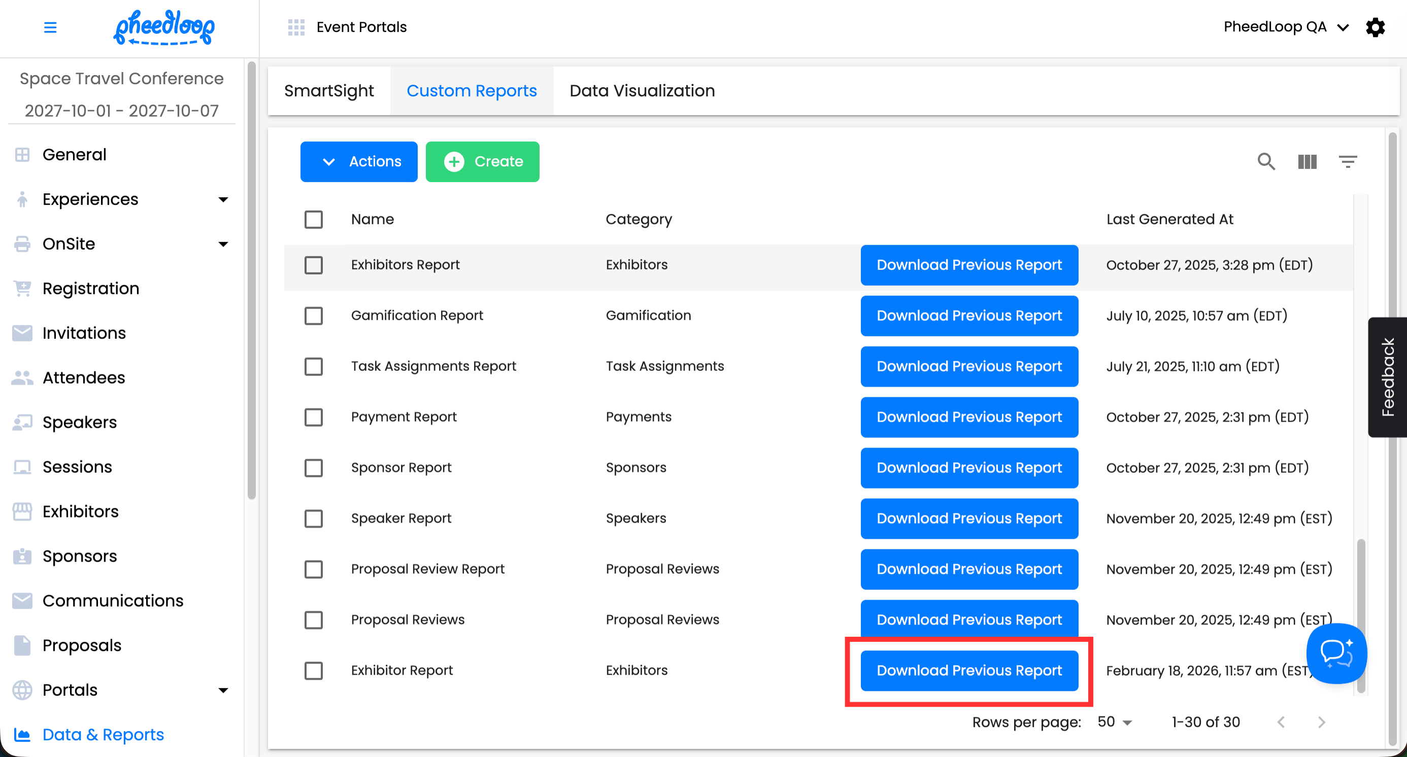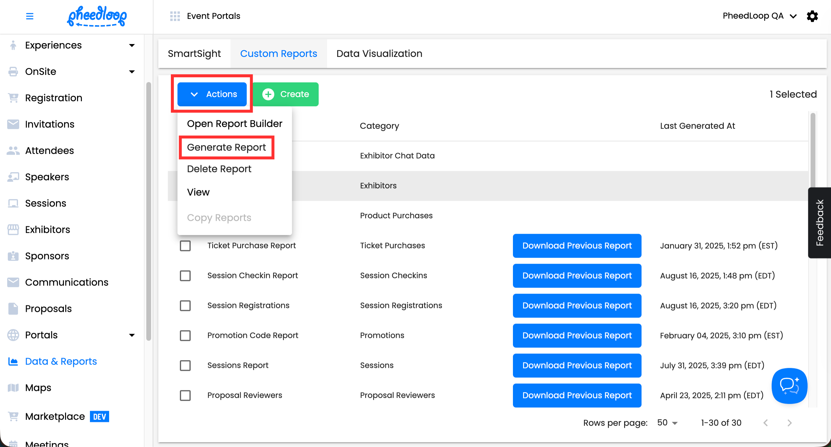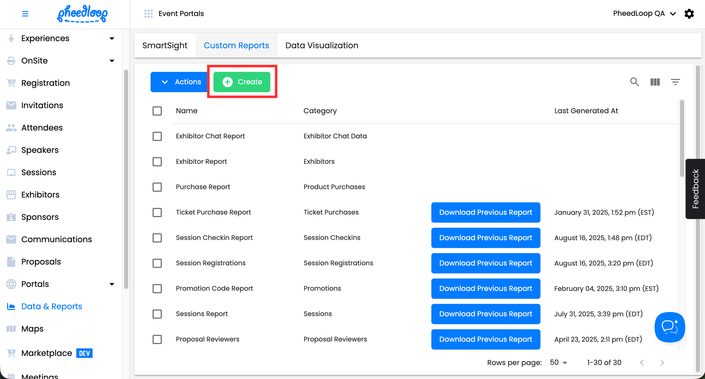 - From the Event Dashboard, navigate to Data & Reports > Custom Reports