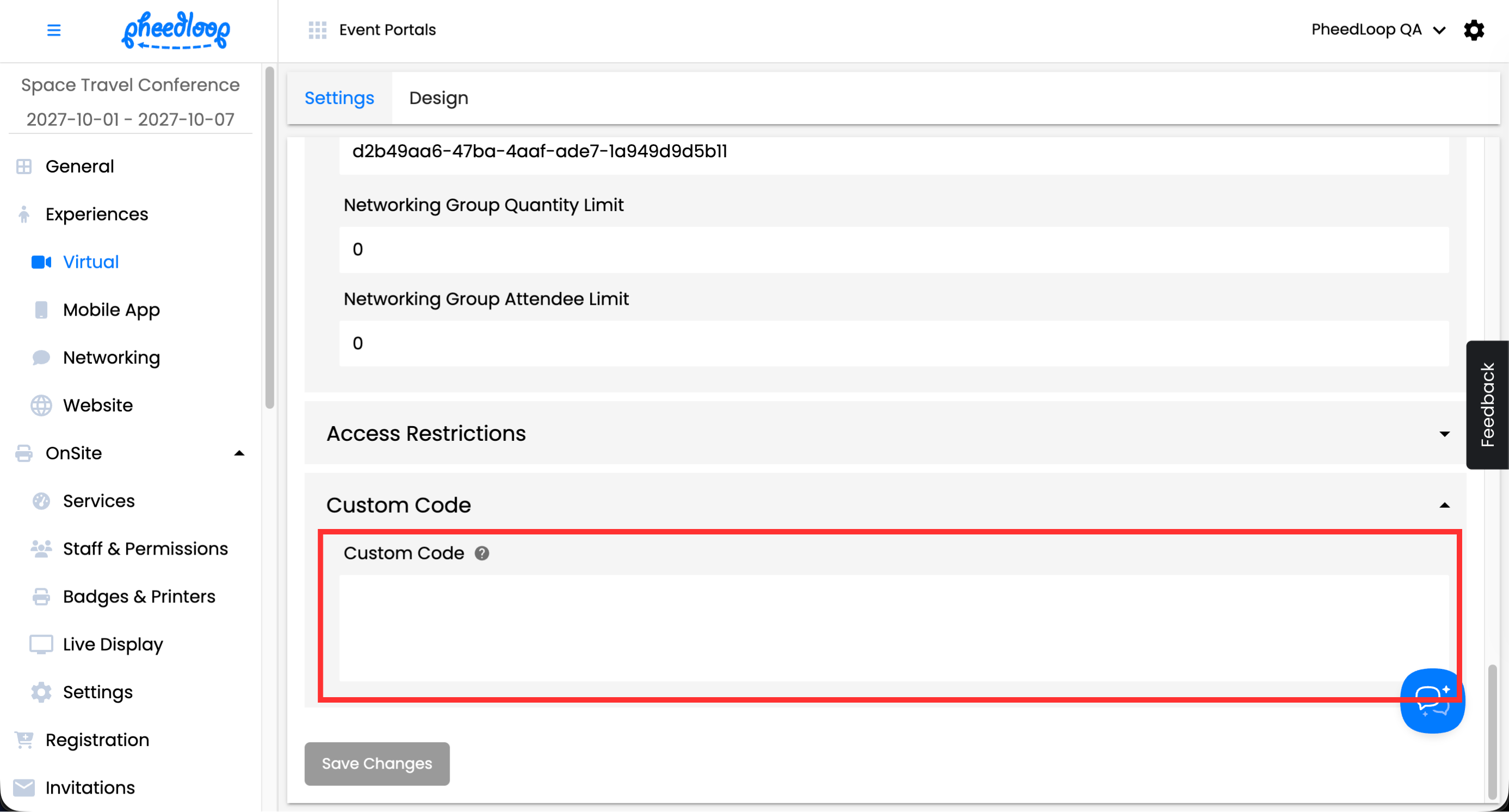 How can I add Custom Code into my Virtual Event?